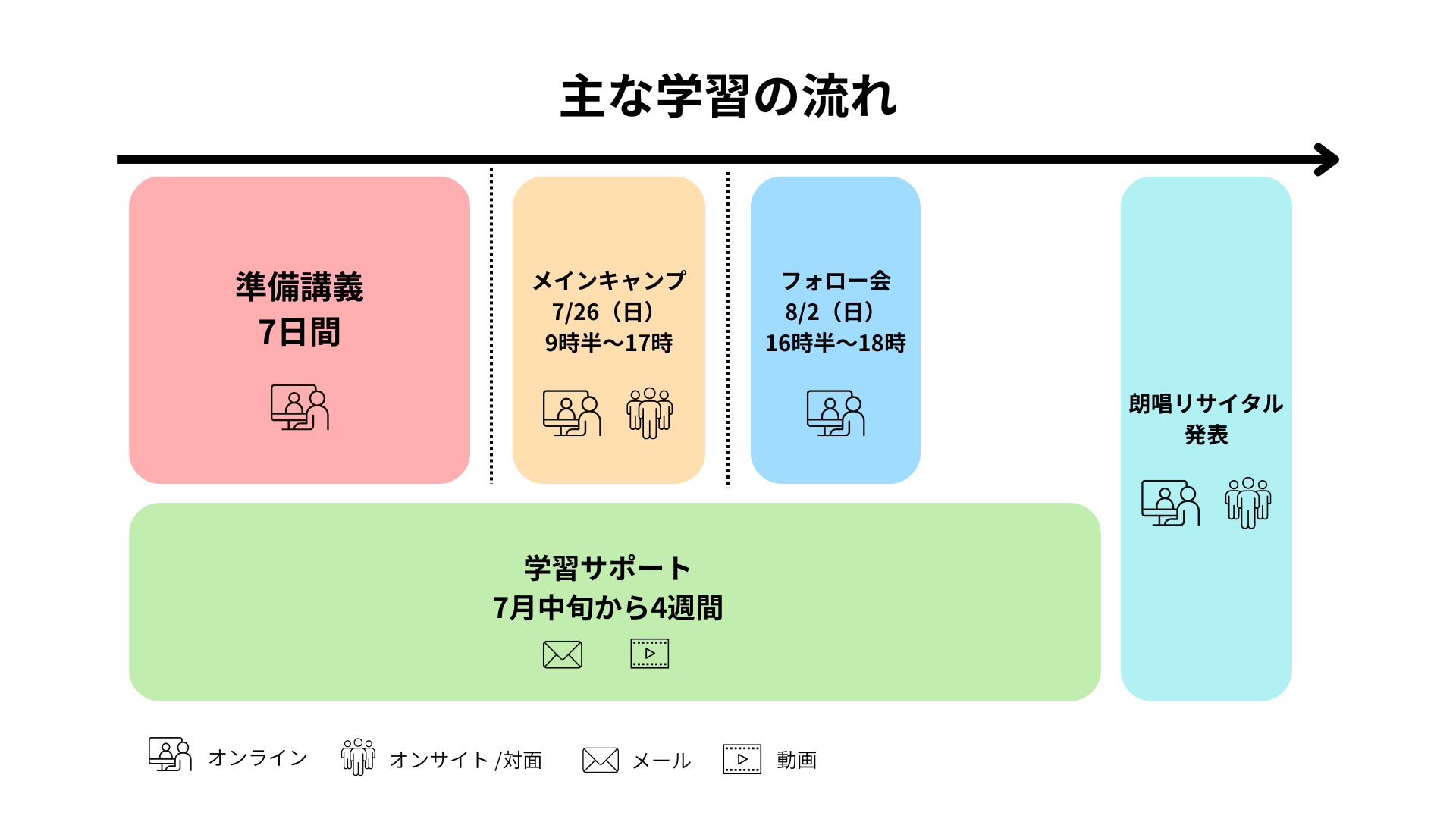 朗唱ブーストキャンプは、メインキャンプの1日だけではなく、その前後に学びを深めていける集中プログラムです。